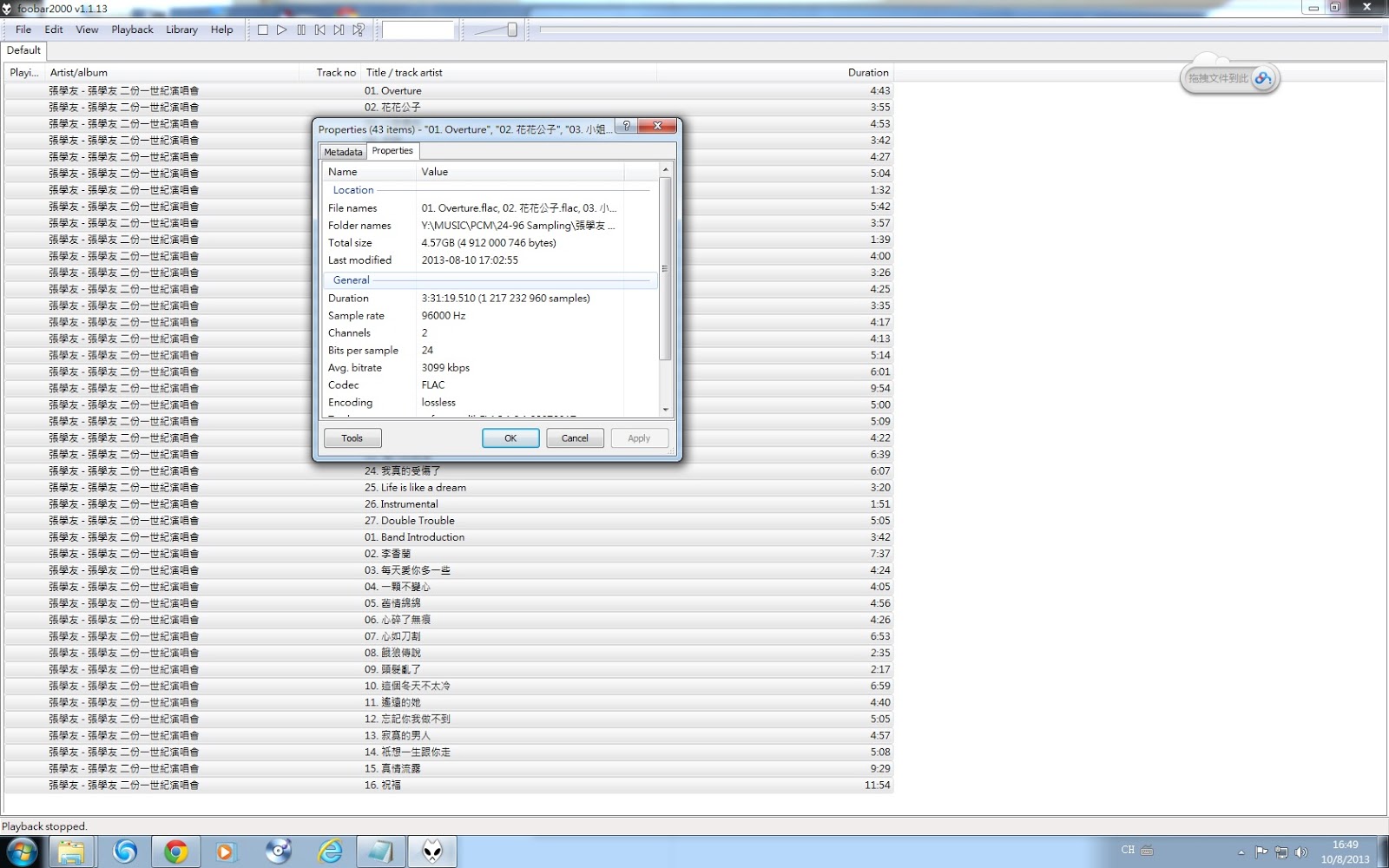 [CAS音響] 張學友1/2世紀演唱會Blu-ray抽出來的96khz 24bit的音軌 |